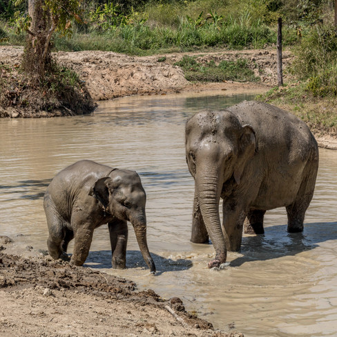 Ce matin, Noémie est toute endormie, nous lui glissons dans l’oreille le mot « éléphant » et soudainement, elle se lève un grand sourire sur les lèvres. Nous passons un moment merveilleux avec ces imposants pachydermes. L’objectif est de les cajoler au maximum. Nous sommes dans un sanctuaire où les éléphants qui ont souffert dans leur vie sont sauvés et dorlotés. Il faut savoir que beaucoup sont utilisés pour travailler ou pour promener les lourds touristes et c’est harassant. A cela s’ajoute le braconnage pour leurs défenses. Et devinez quoi : pour faire un éléphanteau, 24 mois de gestation sont nécessaires ! Tous ces points éclaircis, vous comprenez pourquoi ils sont bien évidement en voie de disparition. Ici, on nous ordonne de les câliner. Ce qui fait un peu peur. Ils sont assez imposants et on imagine que par inadvertance ils pourraient nous écraser comme une mouche. Mais après 2 heures de douceur on est déjà plus en confiance. On les nourrit de bananes. Ils mangent 10 % de leur poids par jour alors autant dire que c’est un amuse-bouche. Les 50 bananes qu’on a dû donner à chacun sont passées tout droit… Ce sont des puits sans fond. Il y a même un bébé qui a le même âge que Noémie mais fait 10 fois son poids. Pour ce dernier, un petit traitement de faveur : on lui pèle sa banane avant de la lui glisser dans la trompe qui lui sert de main. Après, on se baigne avec eux. D’abord dans la boue. Ça fait office de savon paraît-il. On est un peu dégoutté mais très impressionné par l’agilité de ces mastodontes à patauger dans cette gadoue. Puis, on se rince tous ensemble à l’eau claire. Encore quelques câlins et c’est là que s’achève cette douce et belle rencontre.